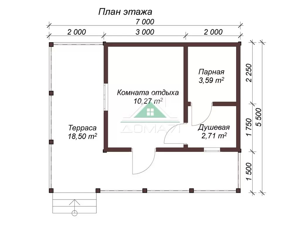 Баня каркасная 7х5,5 проект 9 / 39 м2
