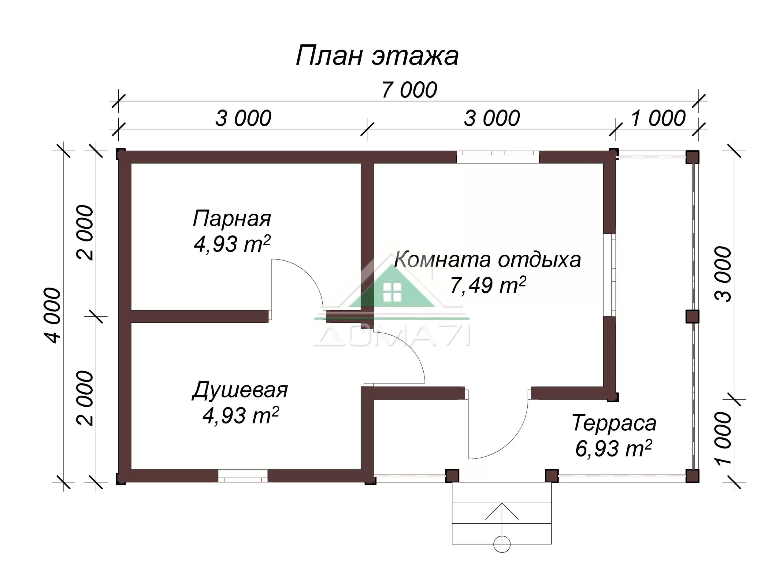 Баня каркасная 7х4 проект 4 / 28 м2