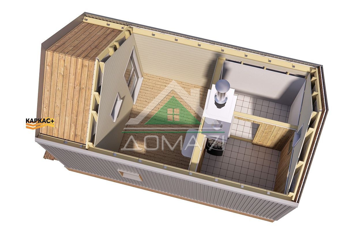 Баня каркасная 4х6 из сухой строганной доски / 27 м2