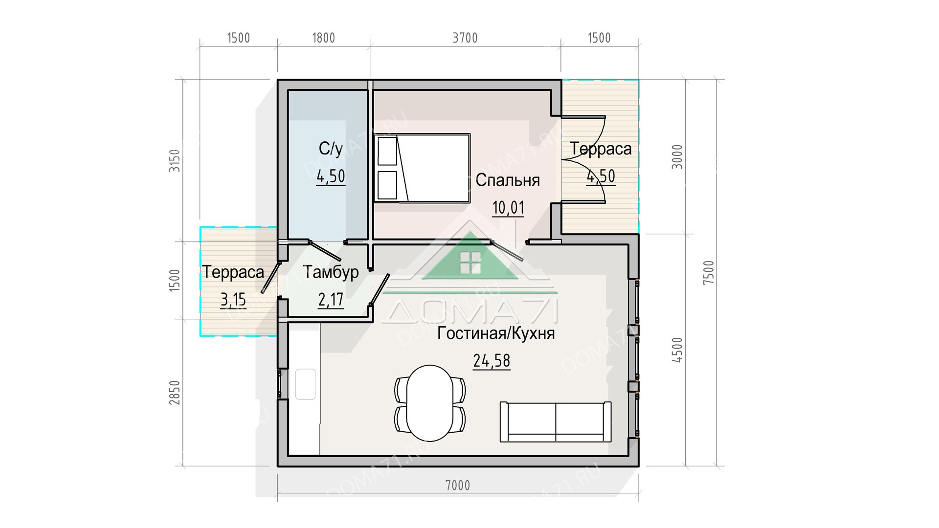 Размеры 7.5x7 м