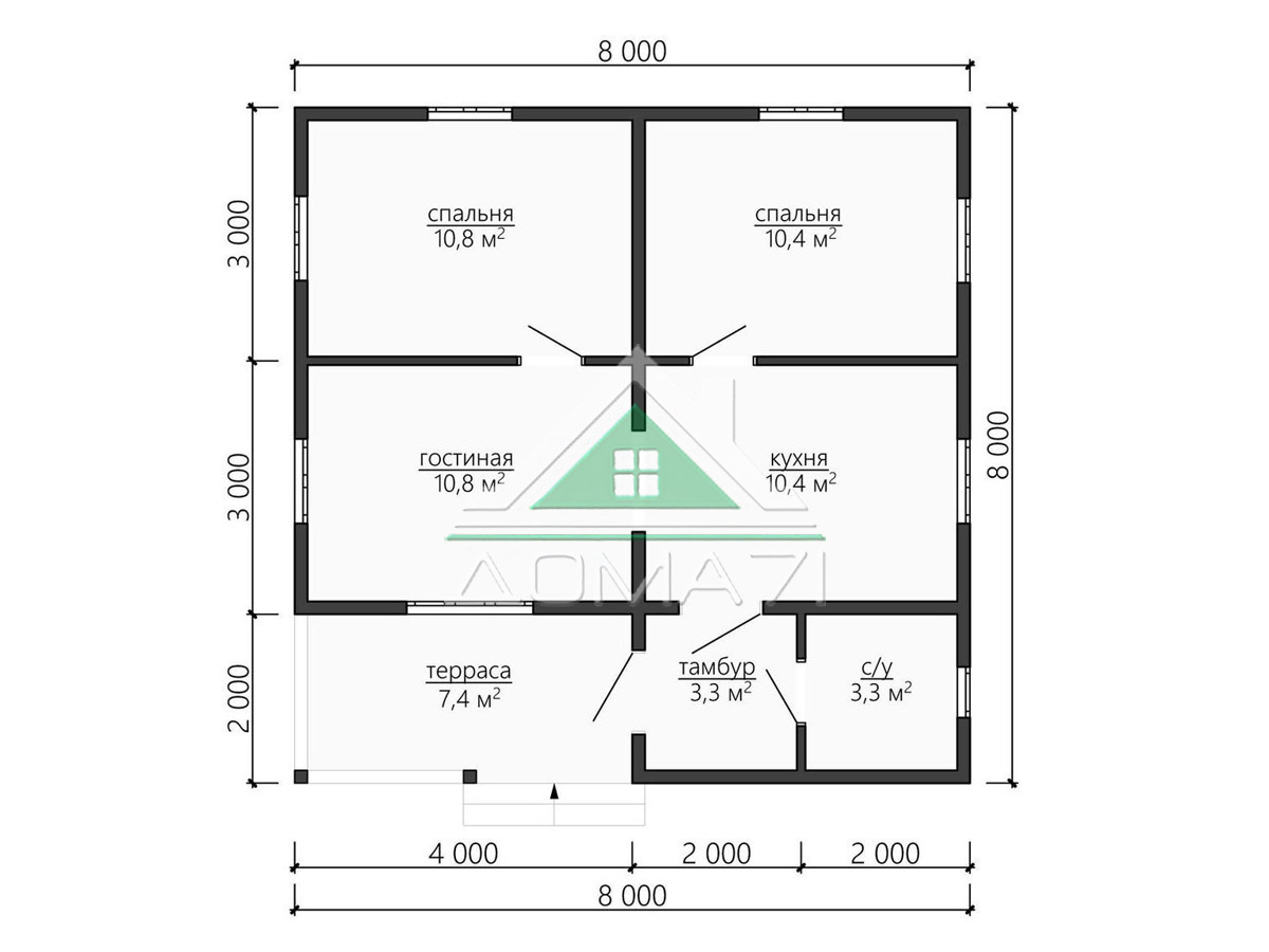 Каркасный дом 8×8 одноэтажный проект 58