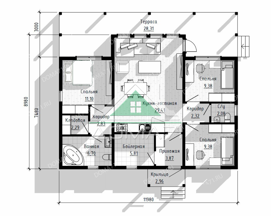 Каркасный дом 120 кв.м одноэтажный проект 69 / 120 м2