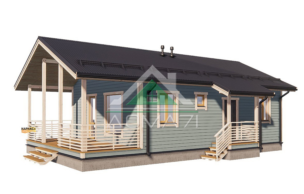 Каркасный дом 12х8 из сухой строганной доски / 76 м2