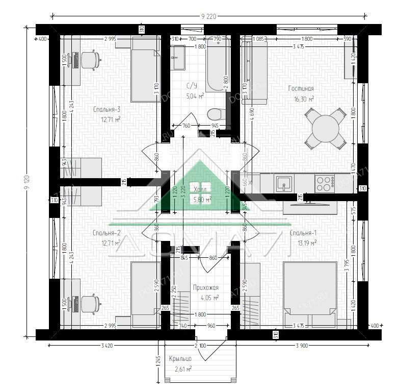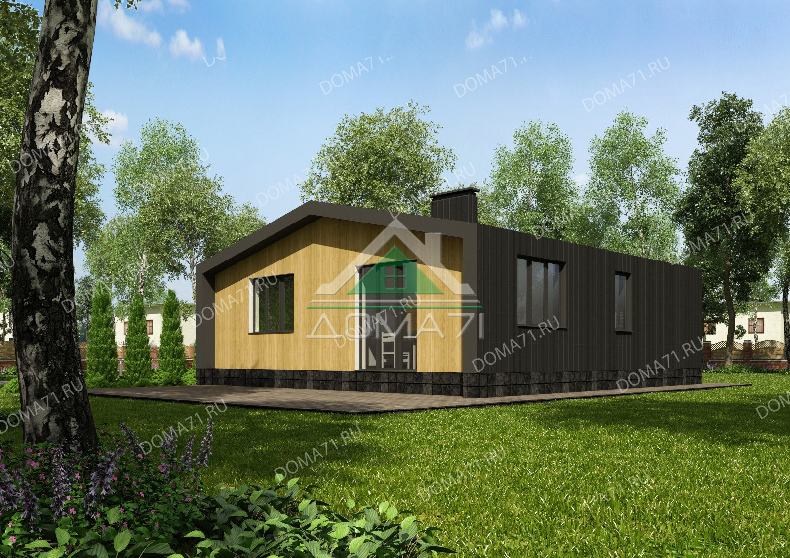 Каркасный дом 71 кв.м одноэтажный проект 77