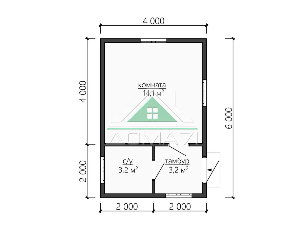 Дачный домик одноэтажный 4х6 проект 45 / 24 м2