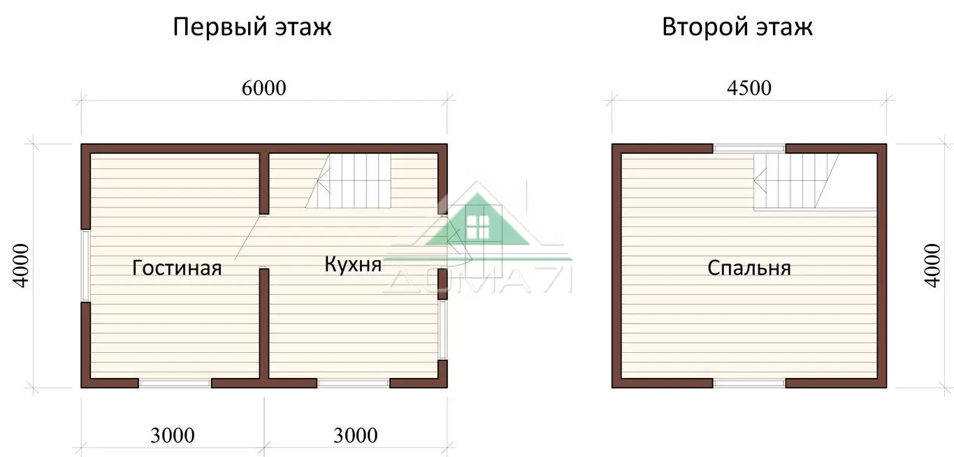 Каркасный дачный дом 4х6 проект 2 / 42 м2