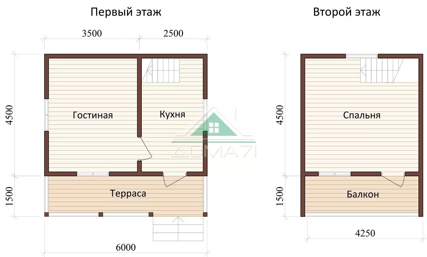 Каркасный дачный дом 6х6 проект 17 / 62 м2