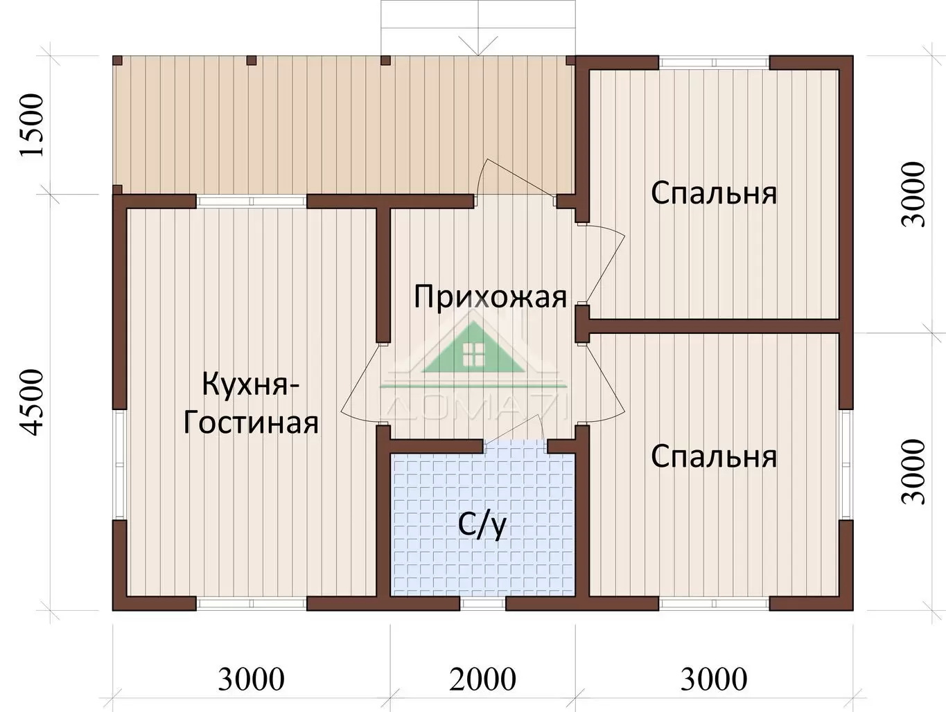 Каркасный одноэтажный дачный дом 6х8 проект 9 / 48 м2