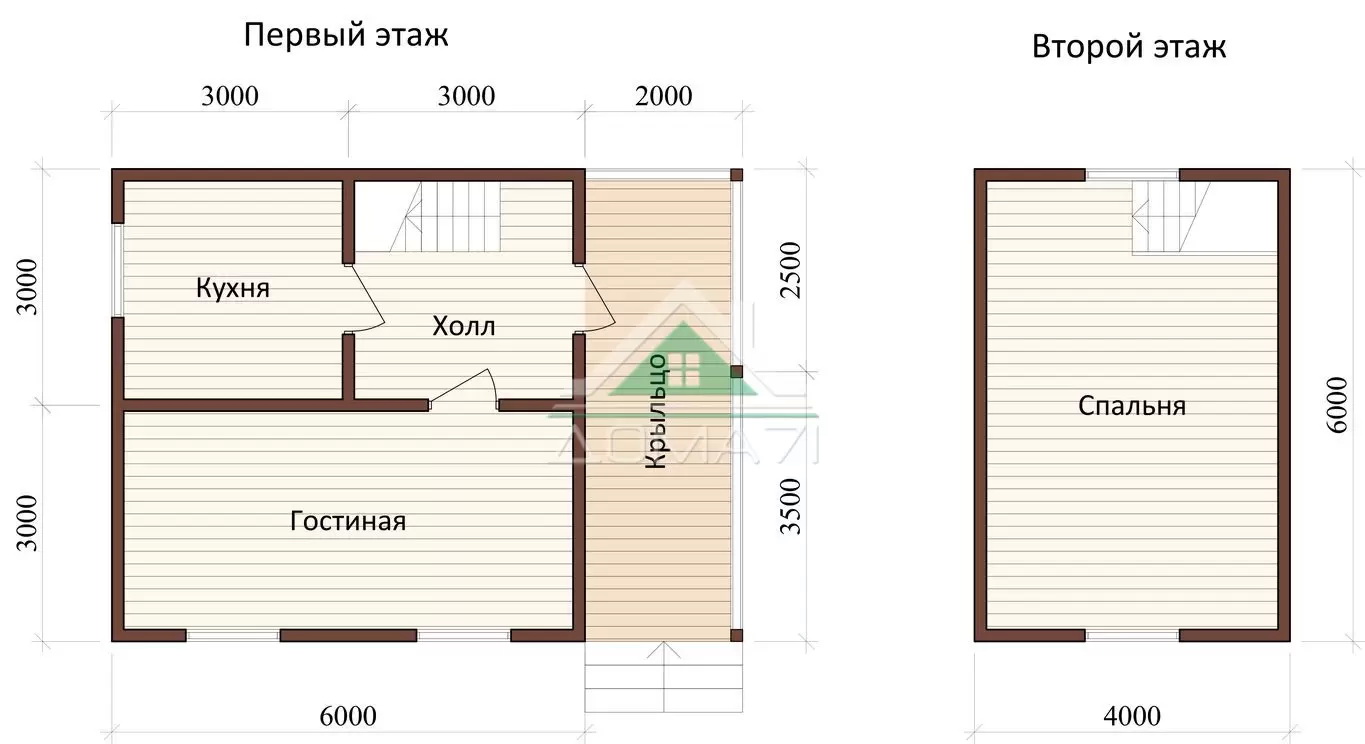Каркасный дачный дом 6х8 проект 23 / 72 м2