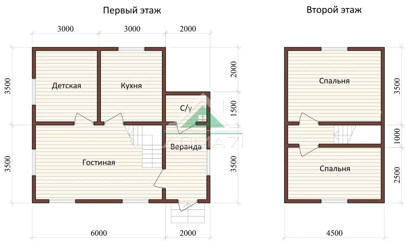 Каркасный дачный дом 7х8 проект 33 / 87 м2