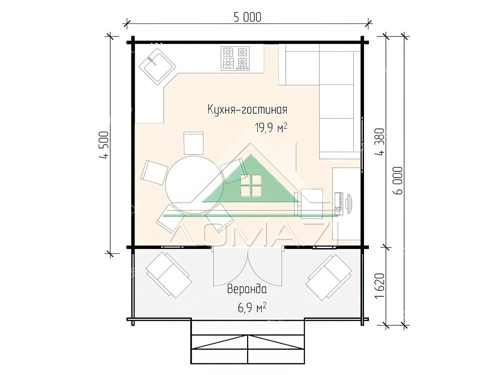 Дом из бруса 5х6. Проект 37 / 27 м2