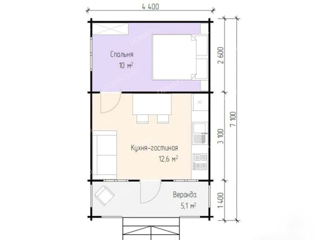 Дача из бруса 4,5х7. Проект 30 / 28 м2