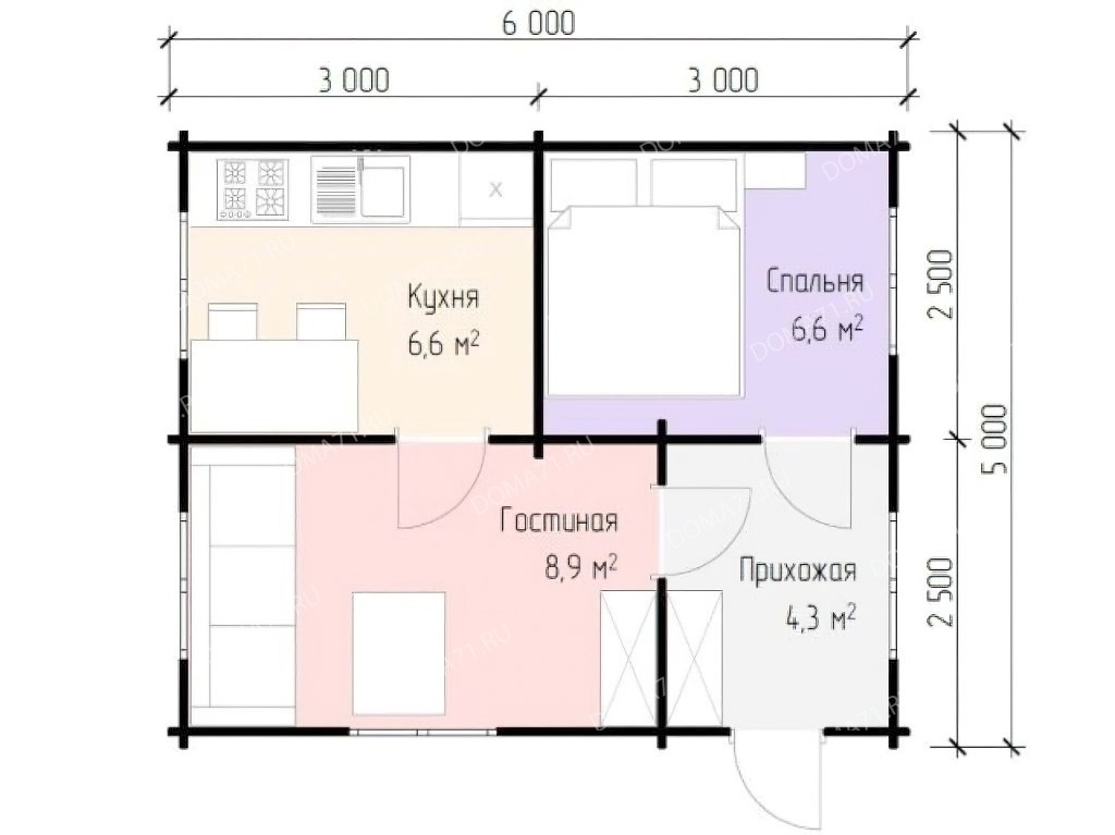 Дачный дом 5х6 из бруса. Проект 22 / 26 м2
