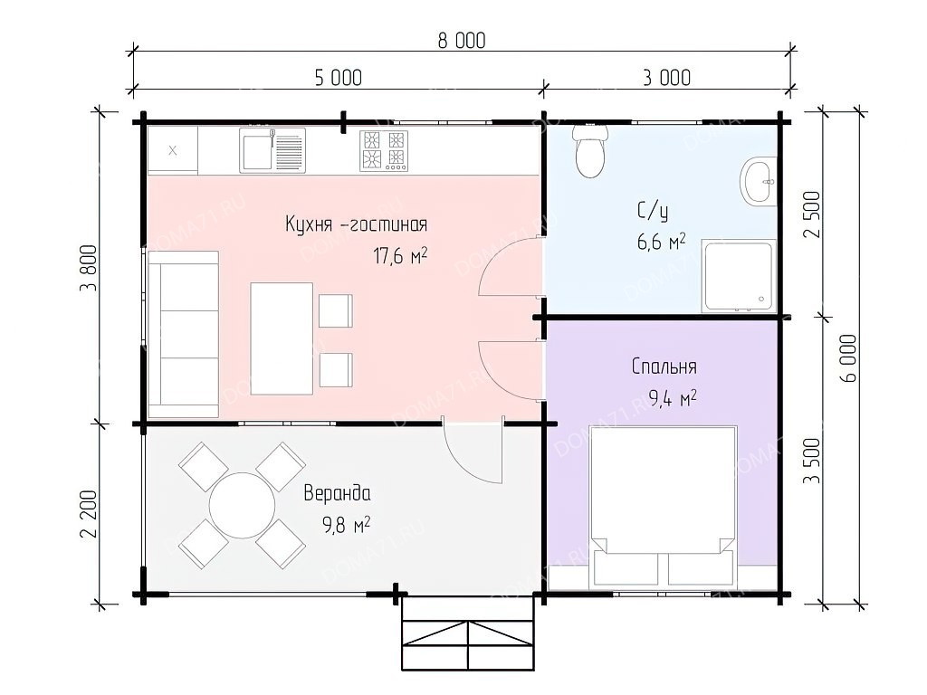 Дом из бруса 6х8. Проект 38 / 43 м2